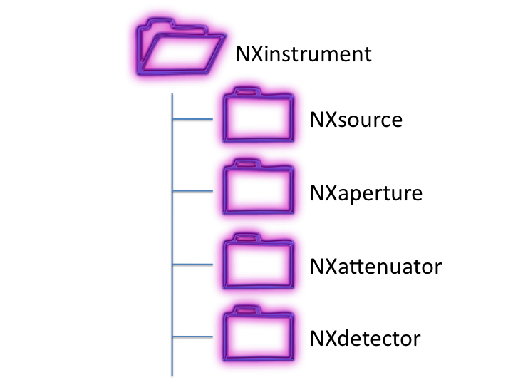 NXinstrument. This is designed to encapsulate all the instrumental information that might be relevant to a measurement, such as flight paths, collimation, chopper frequencies, etc.Since an instrument can include several beamline components each defined by several parameters, the components are each specified by a separate group. This hides the complexity from generic file browsers, but makes the information available in an intuitively obvious way if it is required.