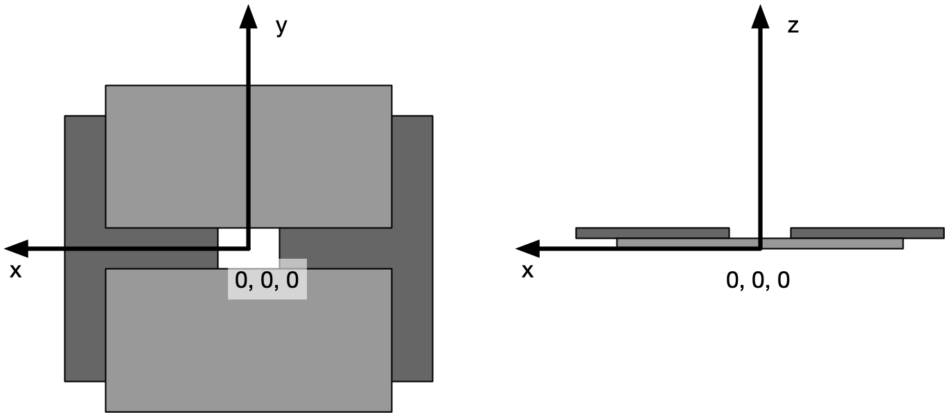 The reference plane of the slit is orthogonal to the z axis and includes the surface that is the entry surface of the slit. The reference point of the slit is the centre of the slit opening in the x and y axis on the reference plane. The reference point on the z axis is the reference plane.