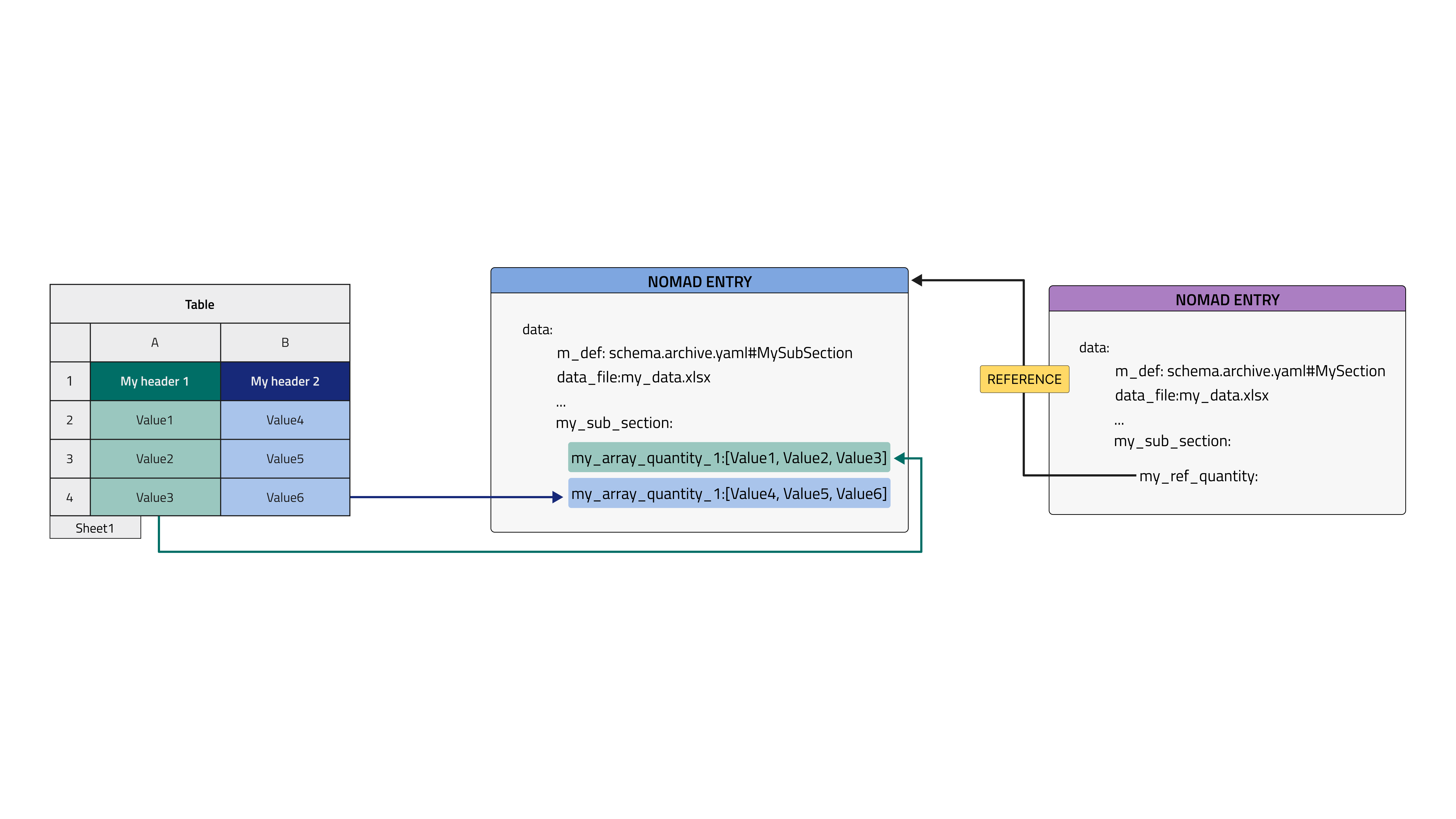 annotation in the parent Entry schema. This annotation is attached to a quantity that becomes a hook to the other ones, It is a powerful tool that allows to list in the overview of each Entry all the other referenced ones, allowing to build paths of referencing available at a glance.