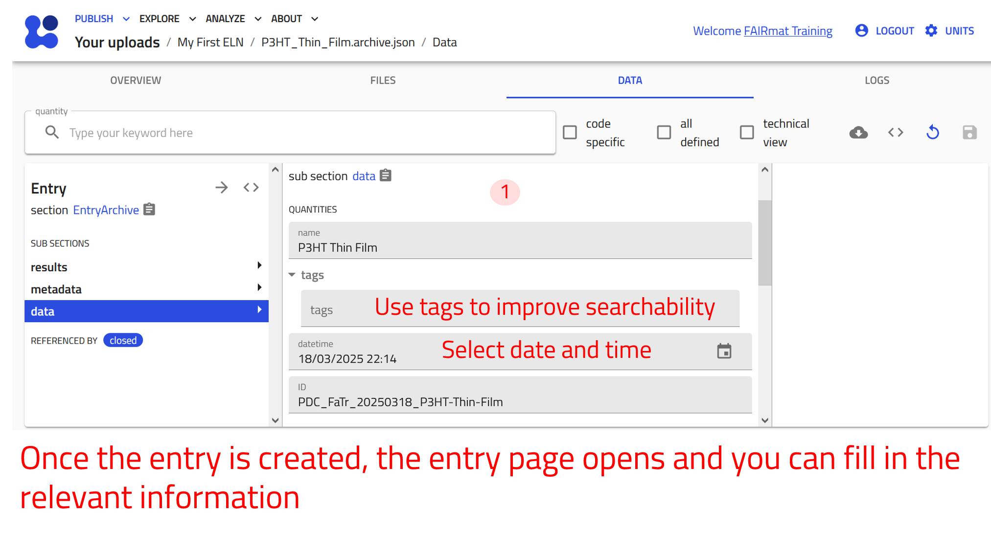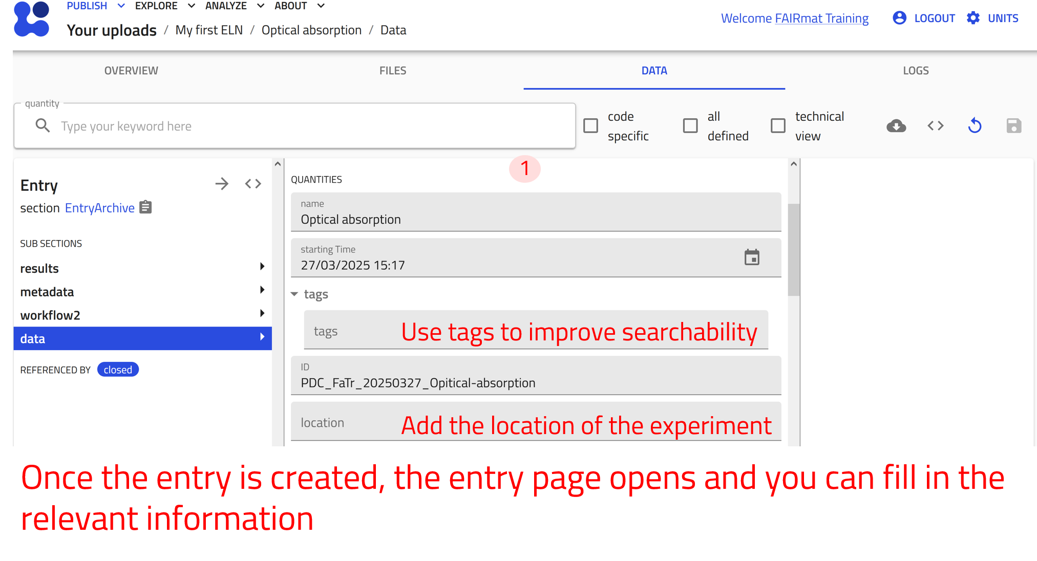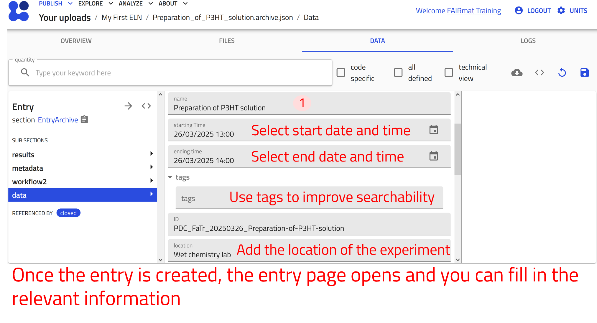 Creating and editing ELN entries requires a NOMAD user account.