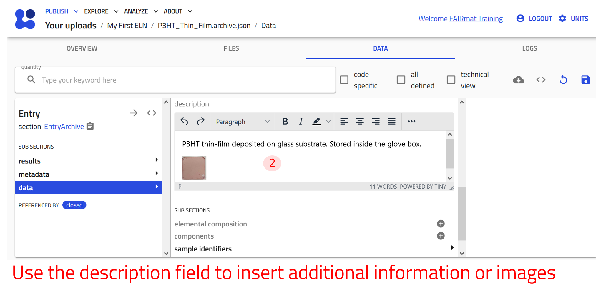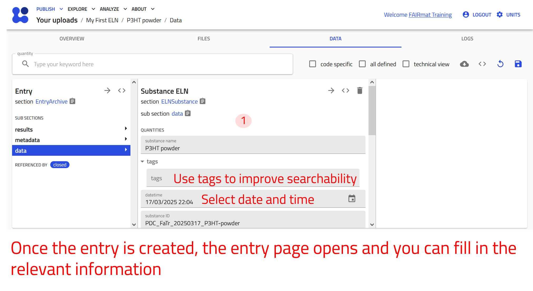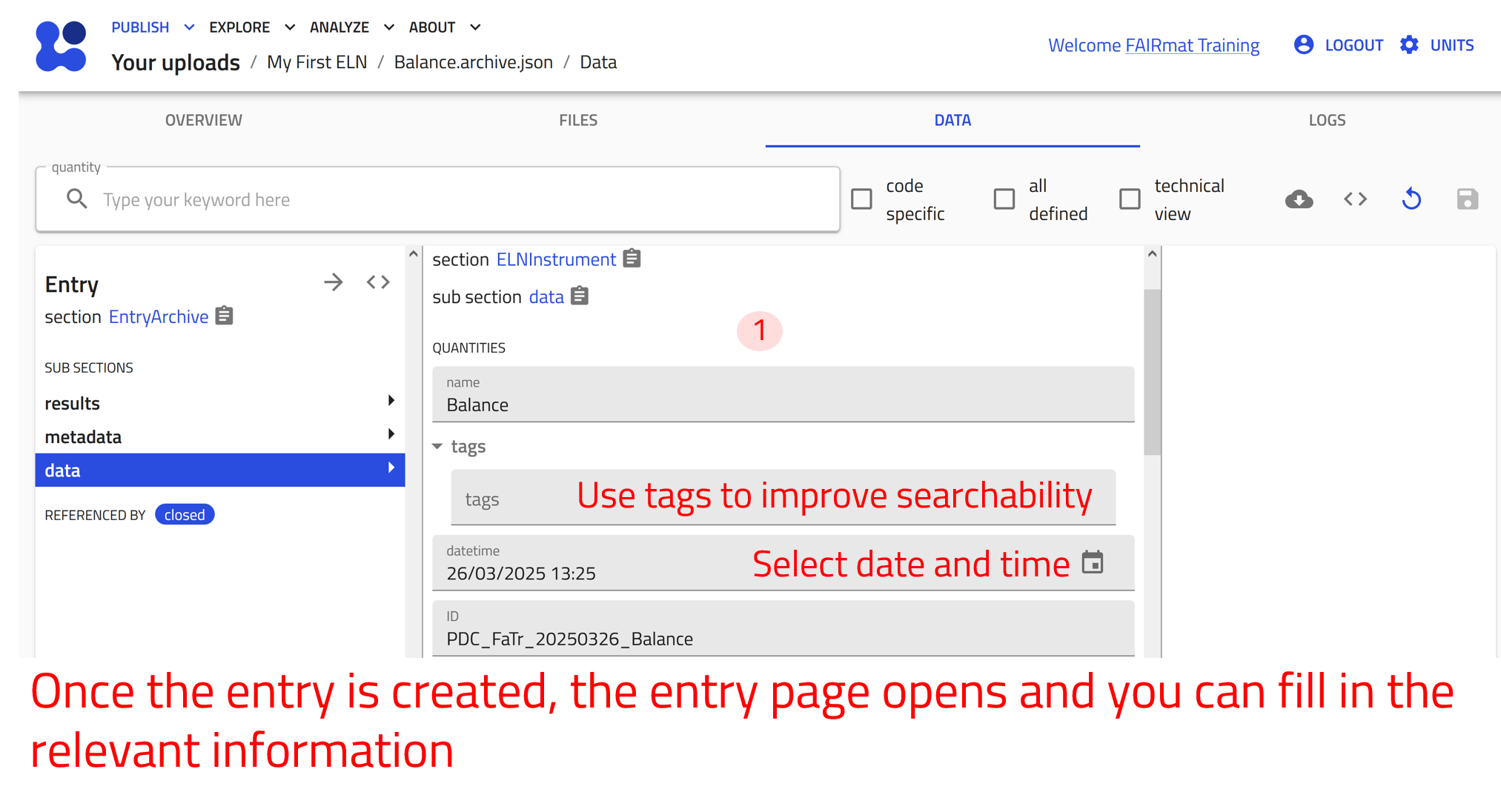 Creating and editing ELN entries requires a NOMAD user account.