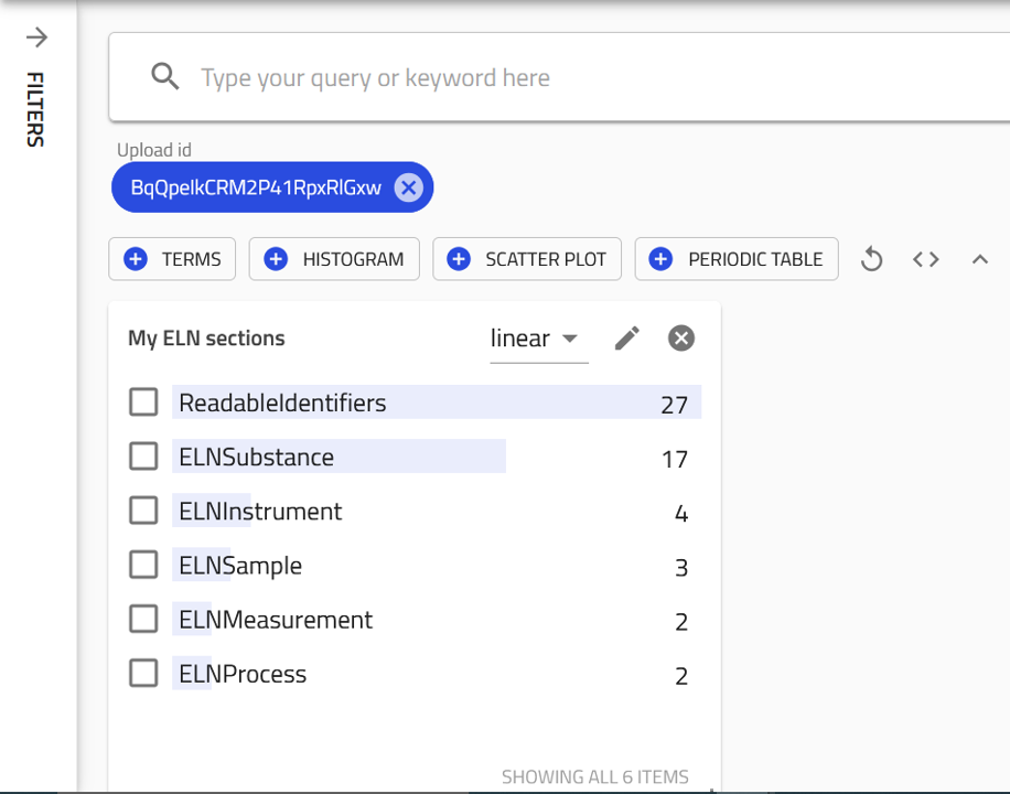 results.eln.sectionsfrom the list. This will enable filtering based on the built-in ELN sections available in your ELN upload.