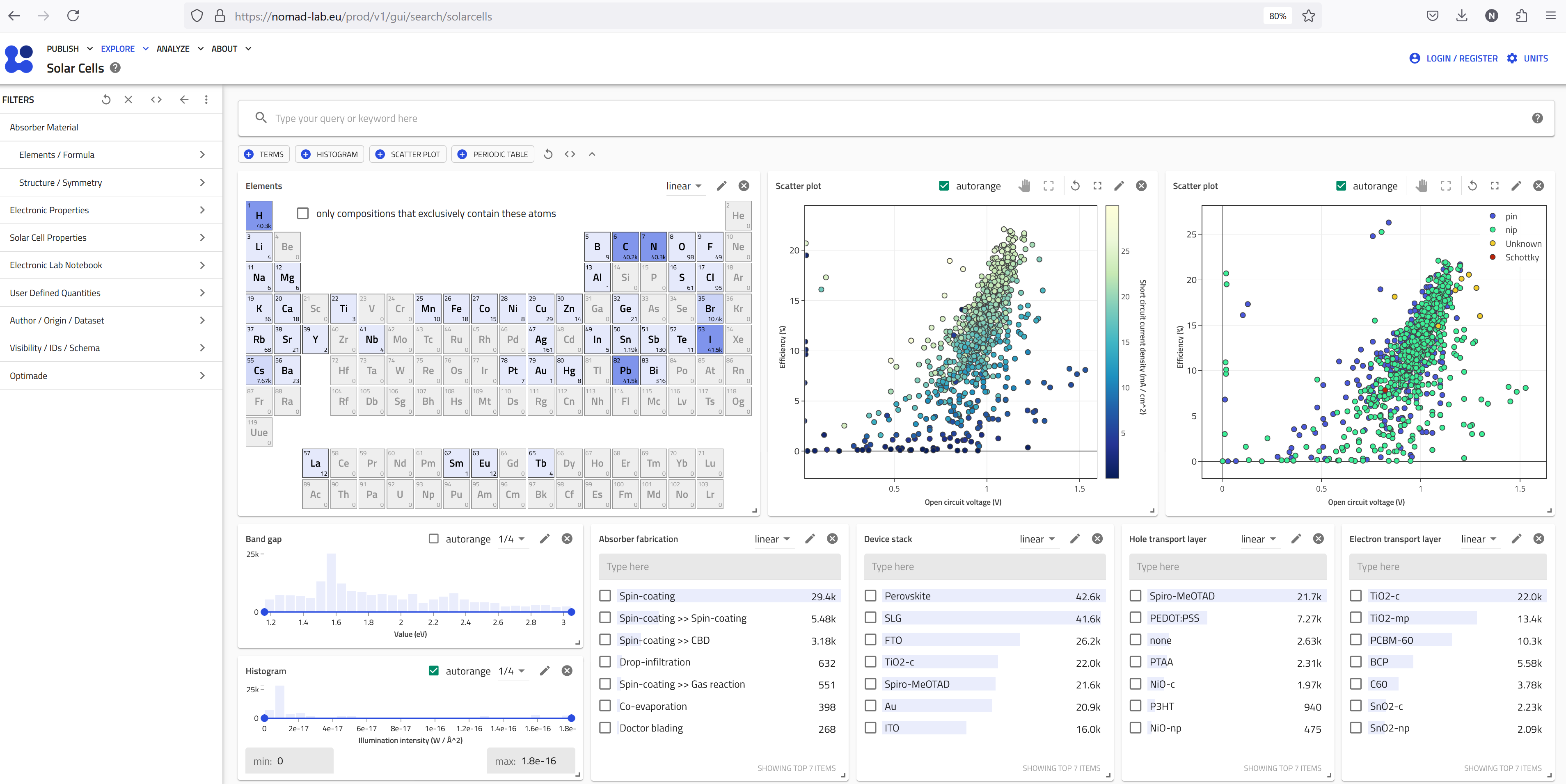 - Use NOMAD’s Explore dashboards to answer concrete scientific questions using real data