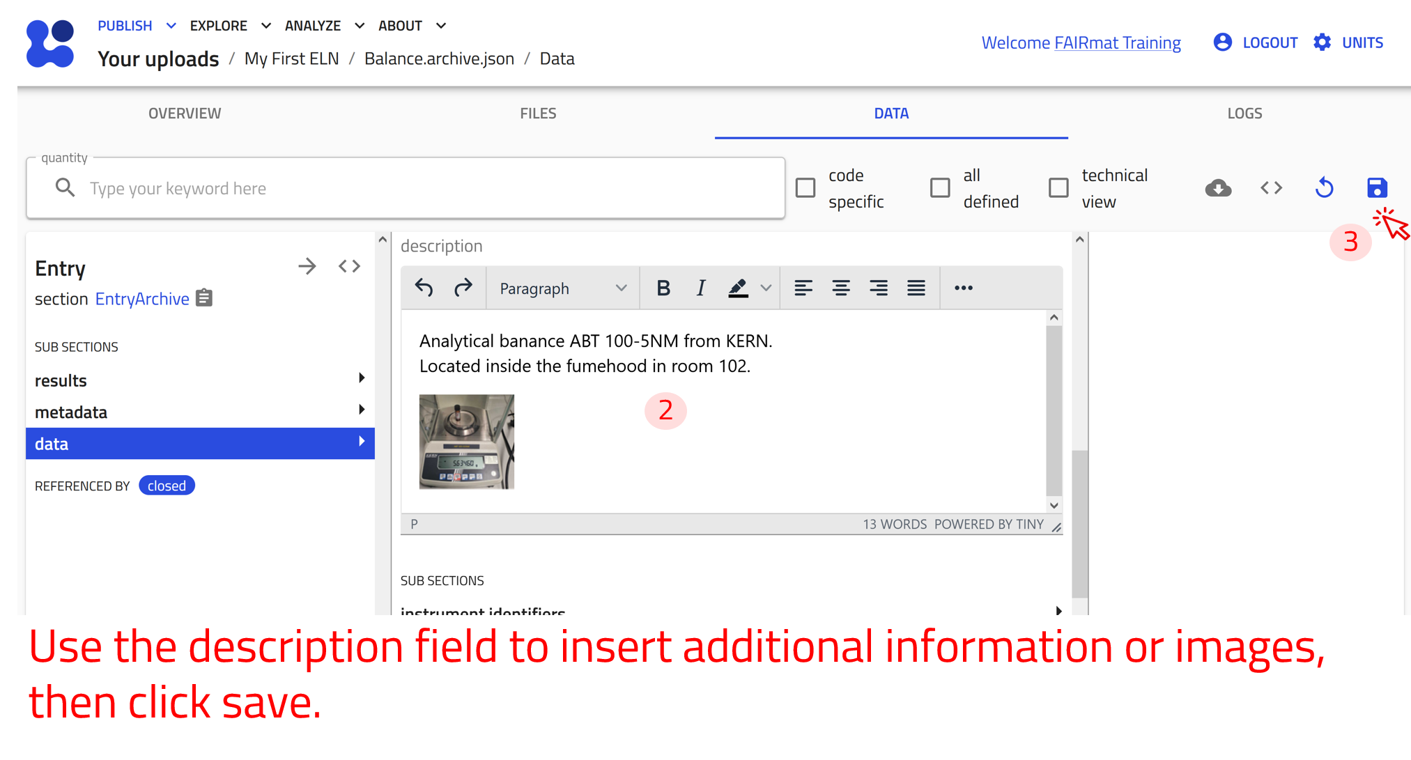 Use the arrow buttons ⬅️➡️ below to follow the steps for creating ELN entries using the built-in schema.